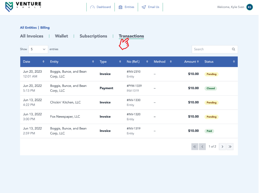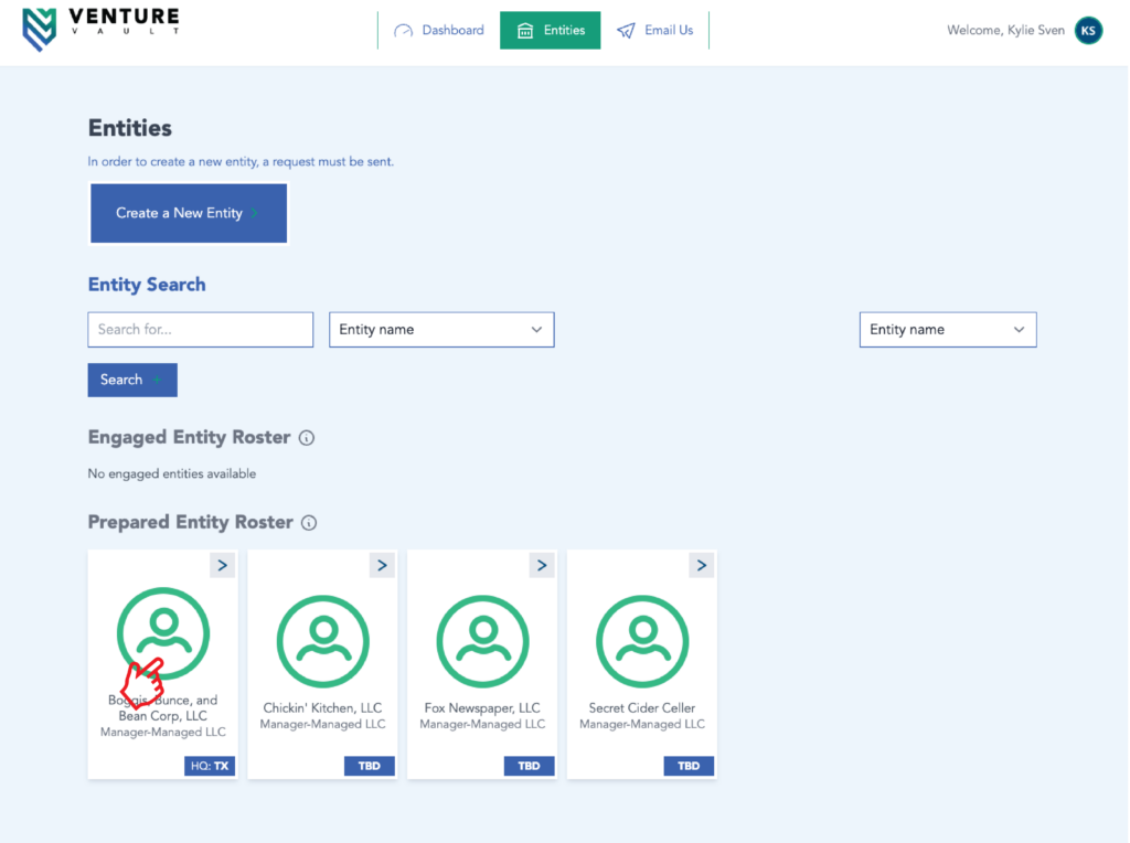 - Select the entity you’d like to manage by clicking the appropriate entity card at the bottom of your screen.