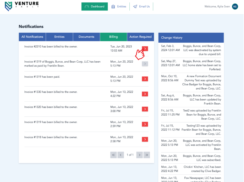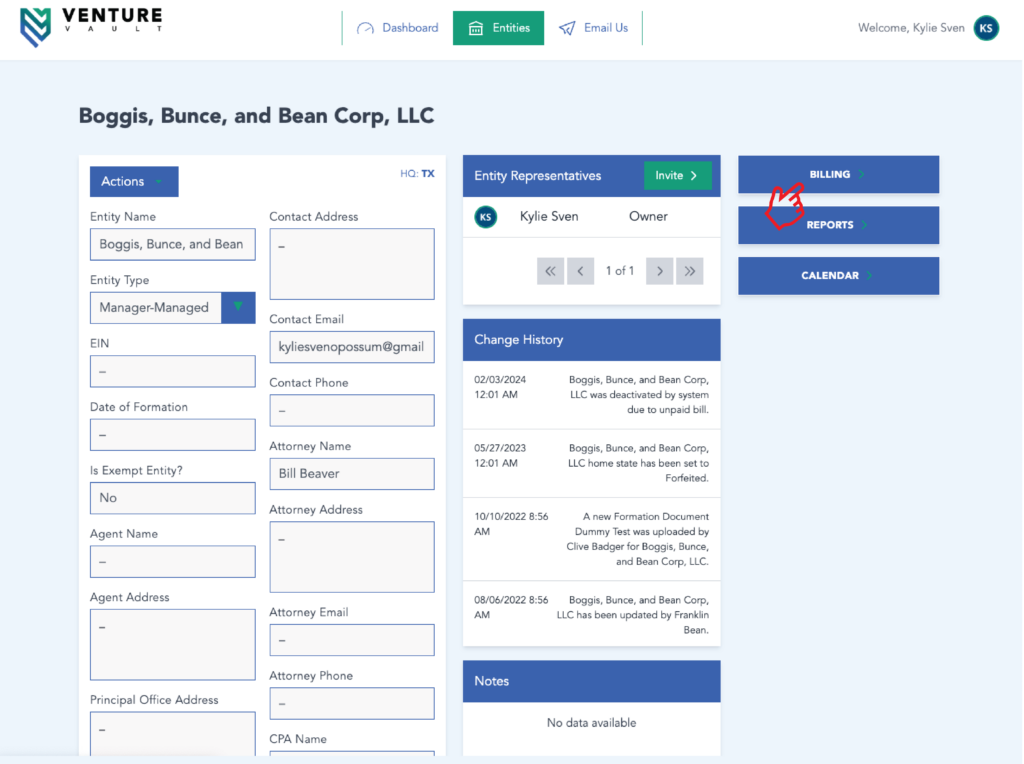 Reviewing and changing your billing information is a snap in the Venture Vault user portal.