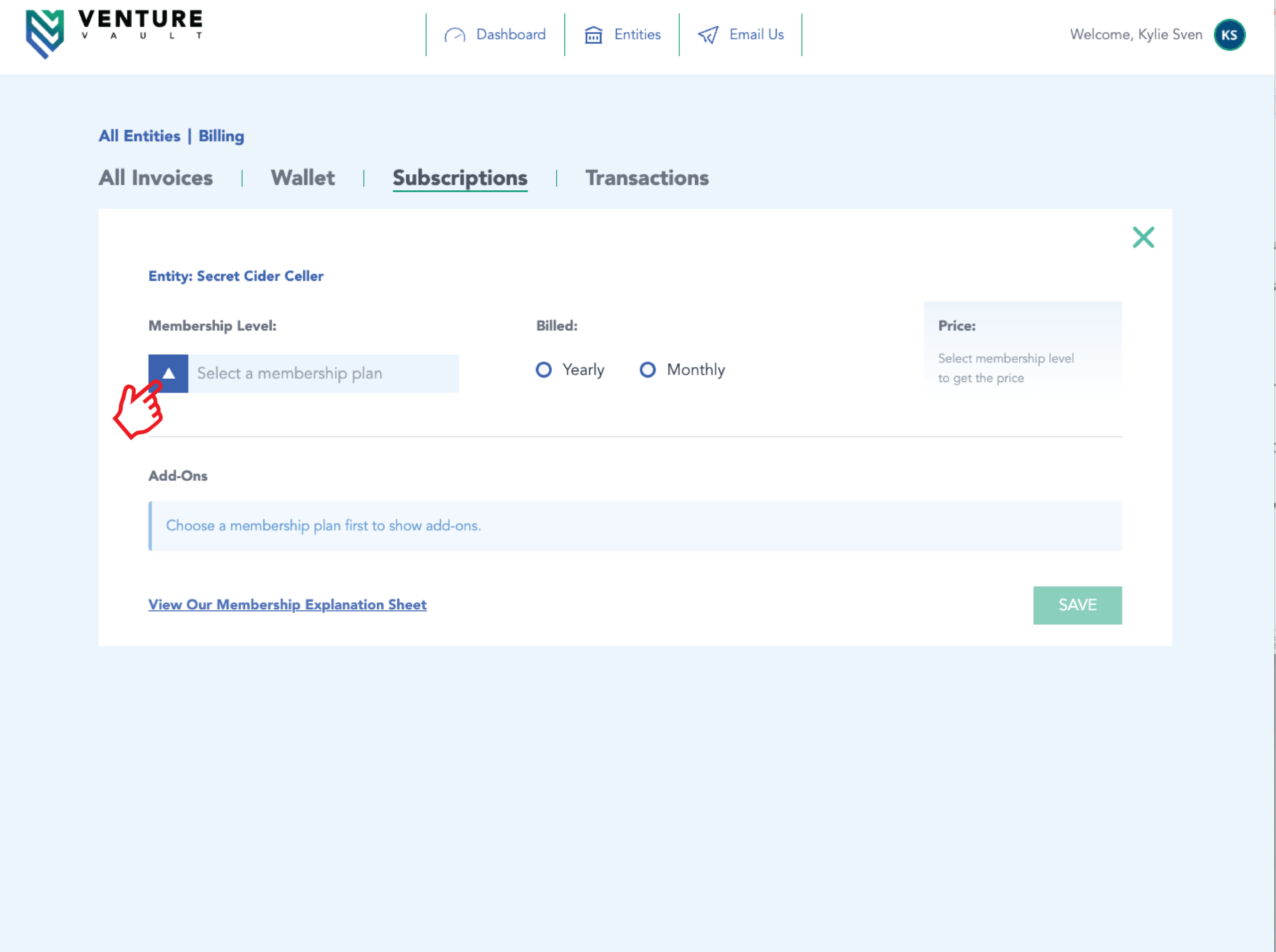 - Click the blue and white triangle at the left side of your screen to “Select a Membership Plan“.